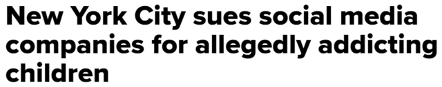 起诉书称,纽约市卫生专员已于2024年1月将社交媒体列为公共健康危害,而市政府及其教育系统不得不投入更多纳税人的资金,以应对由此引发的青少年心理健康危机。