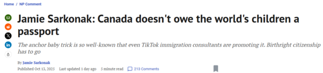 早在2019年,就有55%的加拿大人支持修改“出生即公民”政策。如今,随着社会对经济移民态度愈发冷淡,这一比例只会增加。