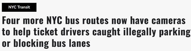 司机们注意了:如果你在纽约市违反公交车道规定,你的车辆很可能会被摄像头拍到。